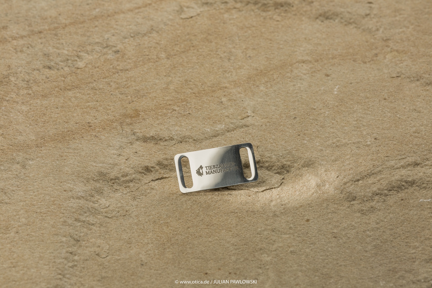 Unsere Marken werden mit einem Laser graviert. Dabei entfernt der Laserstrahl die Farbschicht und die Gravur erscheint in grau-schwarz