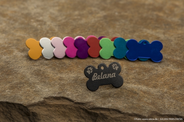 Unsere Marken werden mit einem Laser graviert. Dabei entfernt der Laserstrahl die Farbschicht
